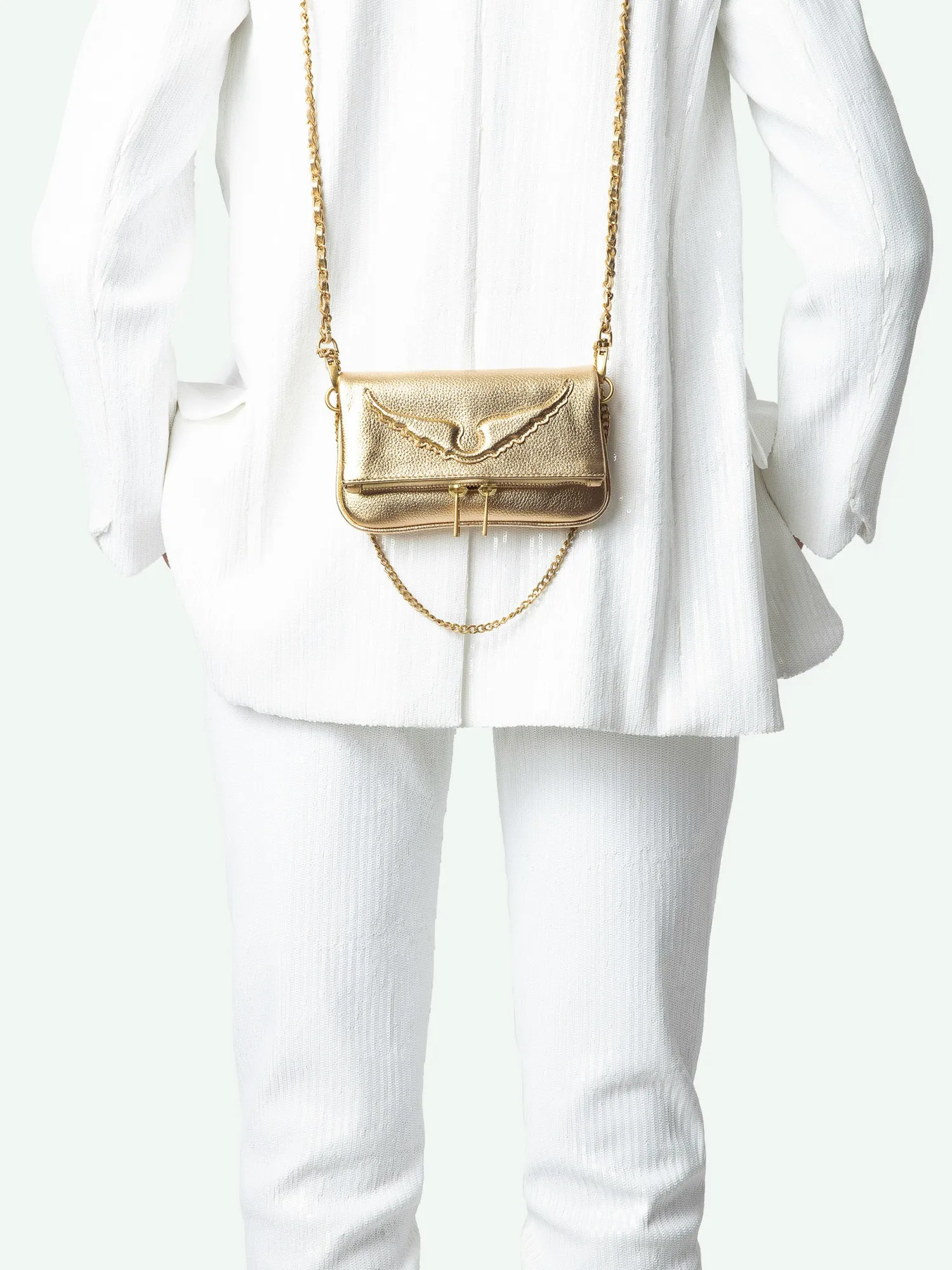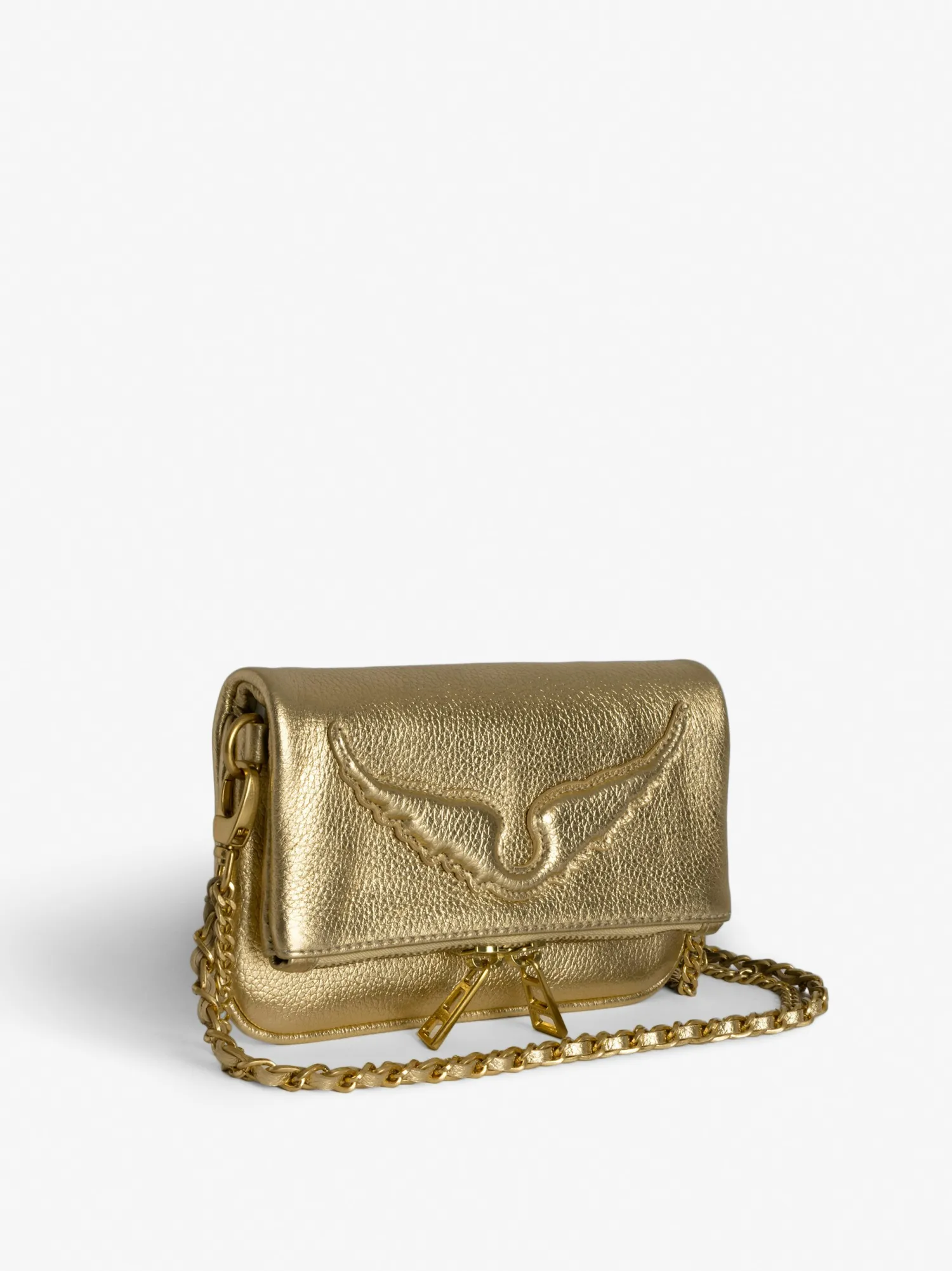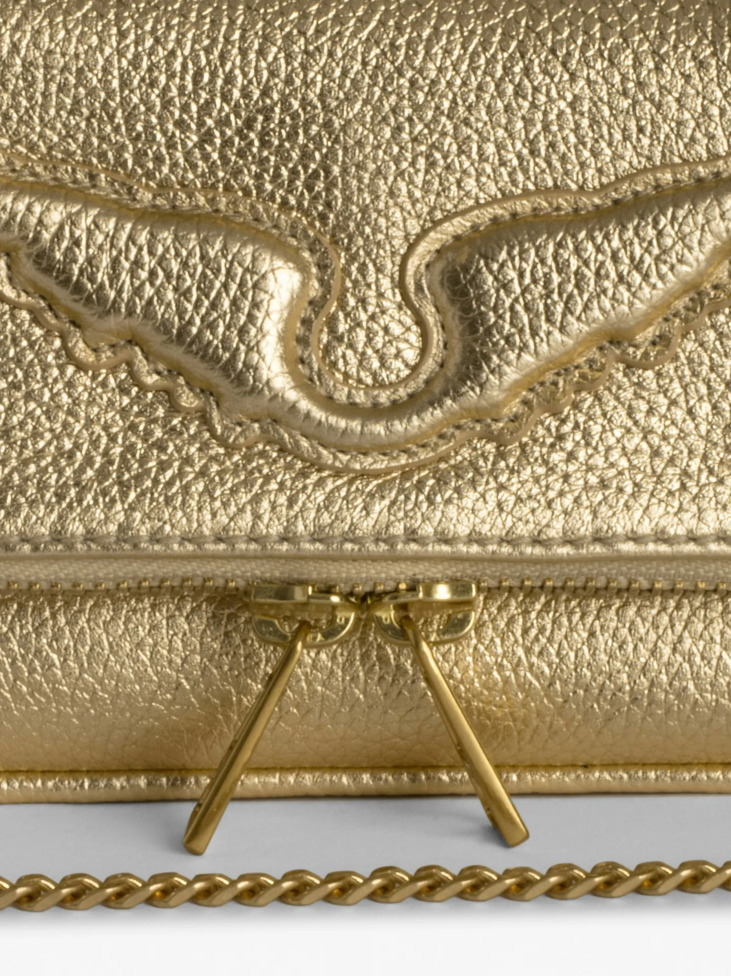– Women’s Gold metallic grained leather Rock Nano clutch – Two removable chains, one interlaced with leather and the other in gold metal – Flap with magnetic fastening – Zipped pockets at the back and inside the flap – Lined – Tone-on-tone embossed wings – Can be carried in the hand or worn on the shoulder or across the body