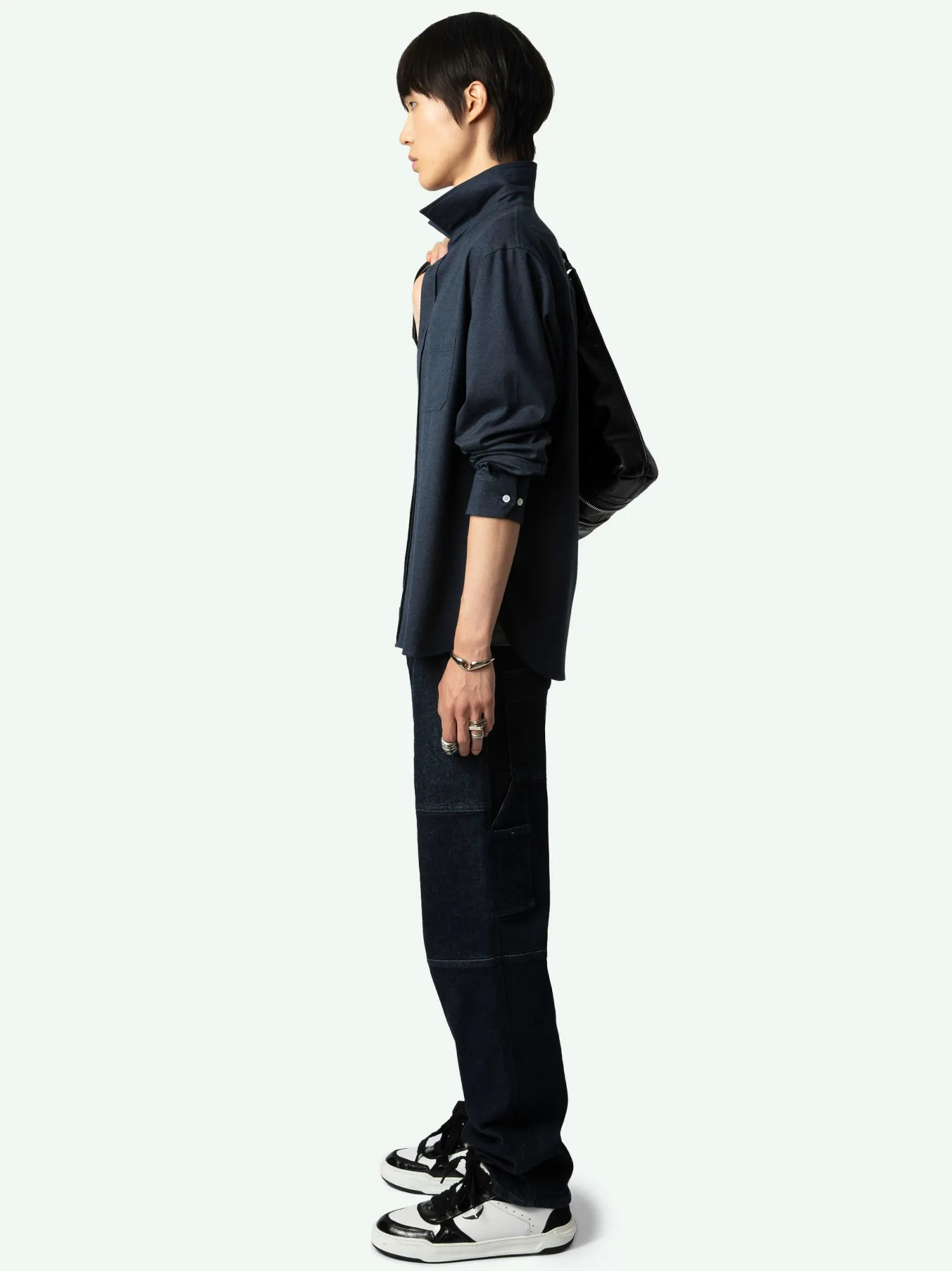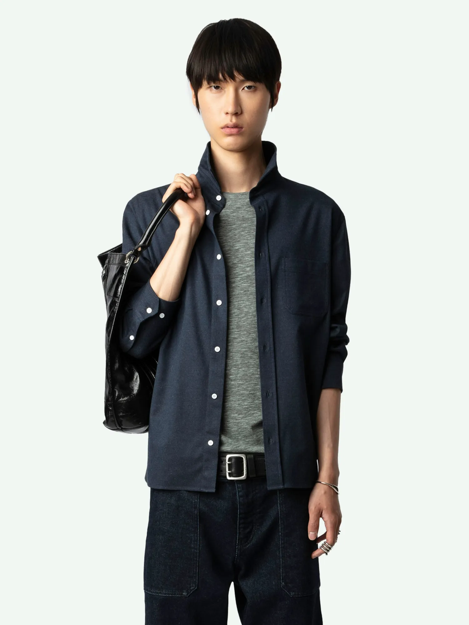 – Men’s Encre blue flannel shirt – Shirt collar and contrasting button fastening – Long sleeves and contrasting buttoned cuffs – 1 chest patch pocket