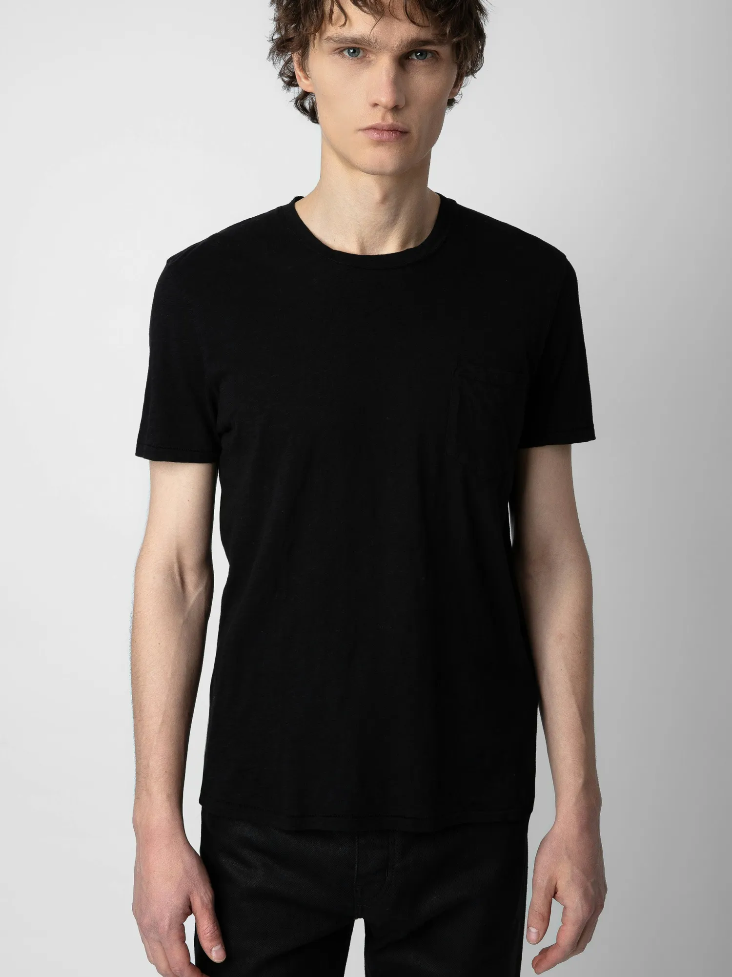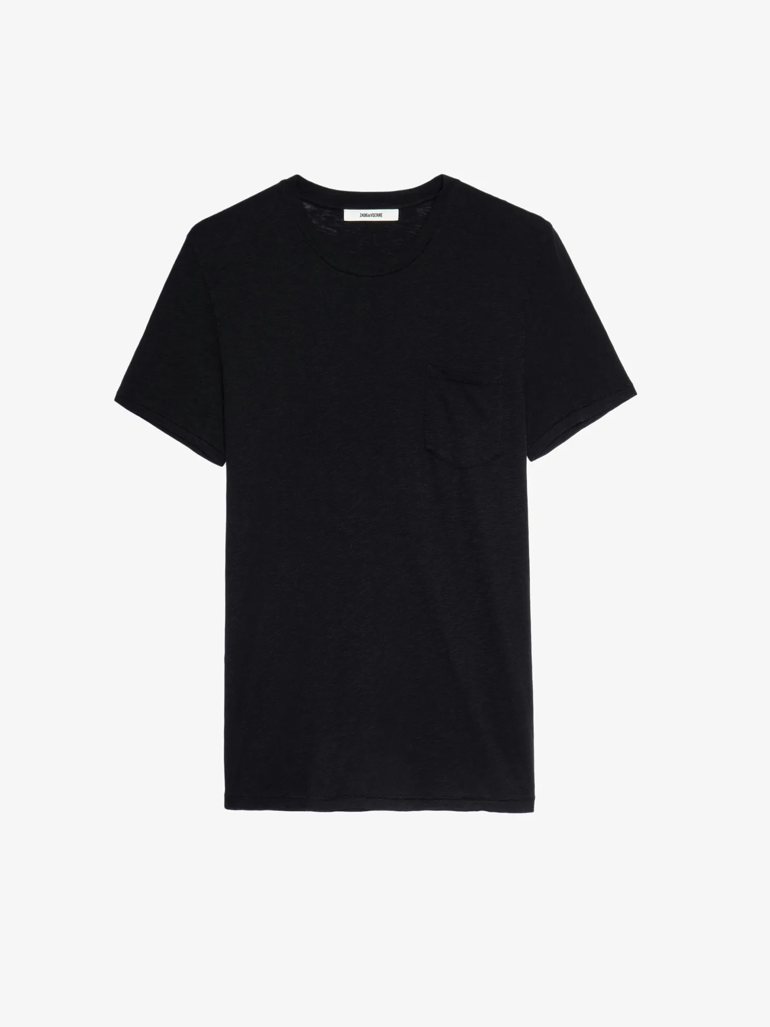Slub cotton T-shirt with short sleeves and a round neck, embellished with a maxi skull on the back. – Zadig&Voltaire Men’s black slub cotton T-shirt – Round neck – Short sleeves – Contrasting skull print on the back – Patch pocket on the chest