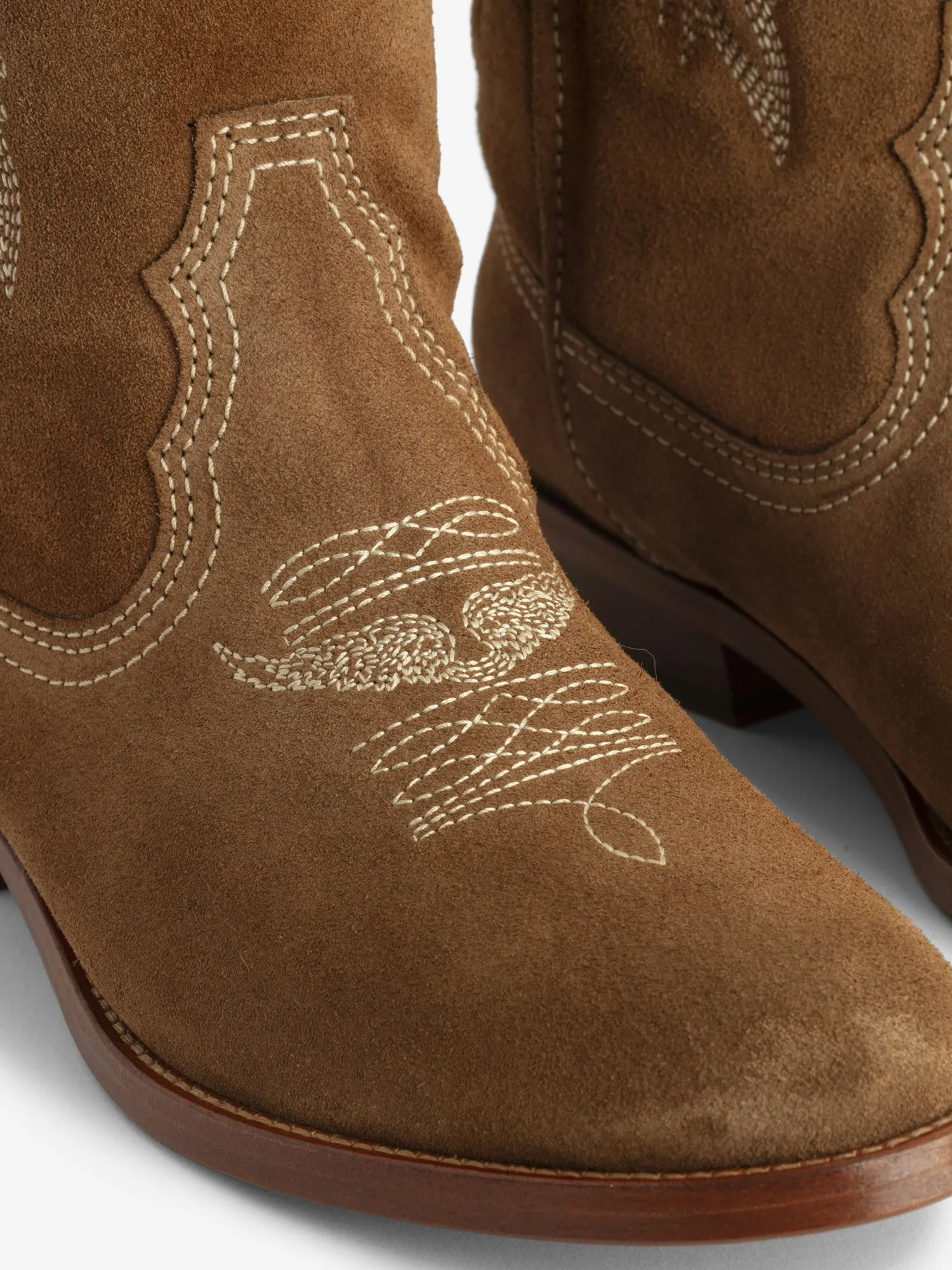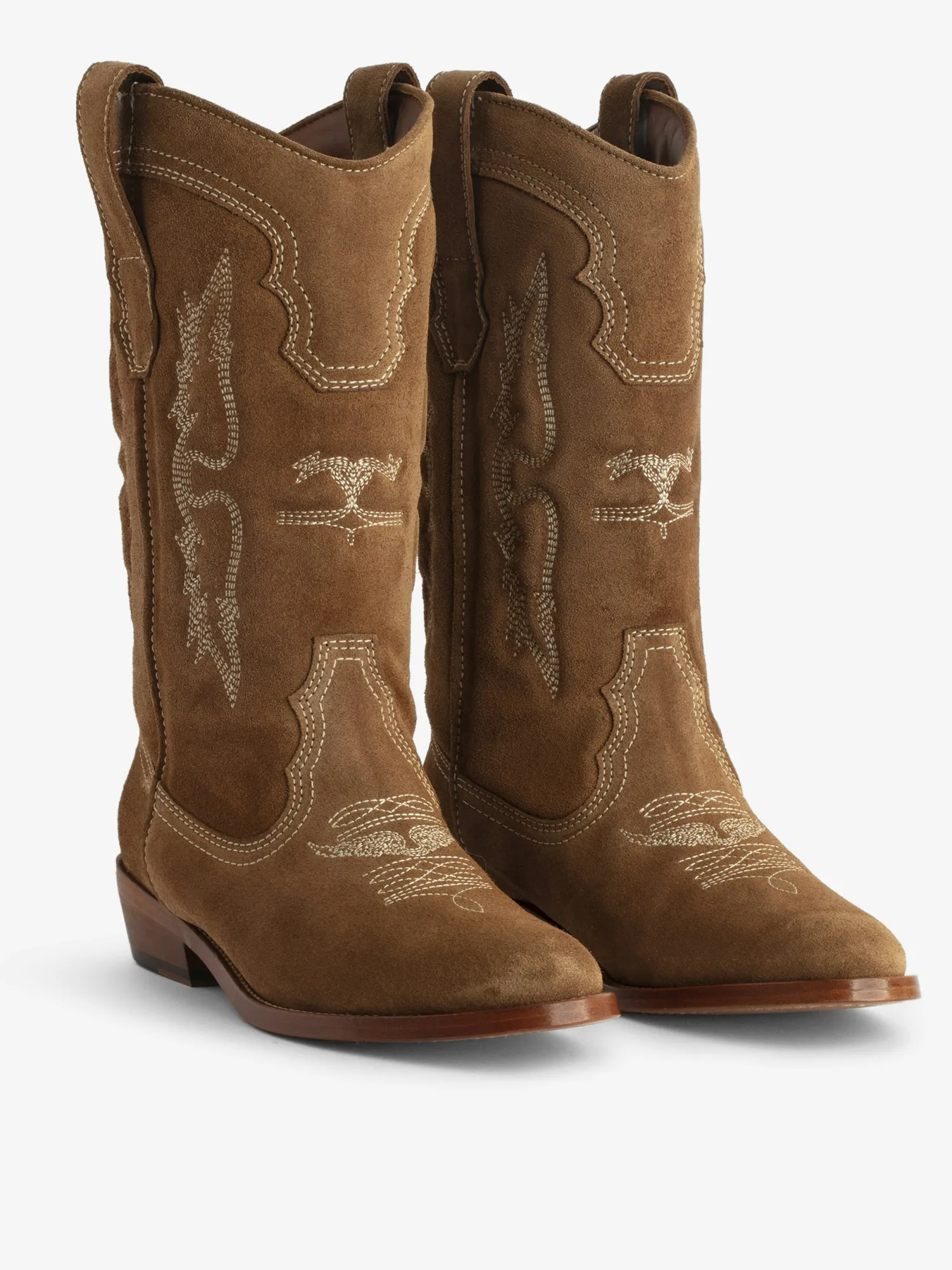 – Women’s Cognac Brown Suede western Boots – Contrasting embroidery wings and signature golden wings on the back – Pull tabs on the sides – Rounded toe and angled heel – Heel height: 3.5 cm – Made in Portugal