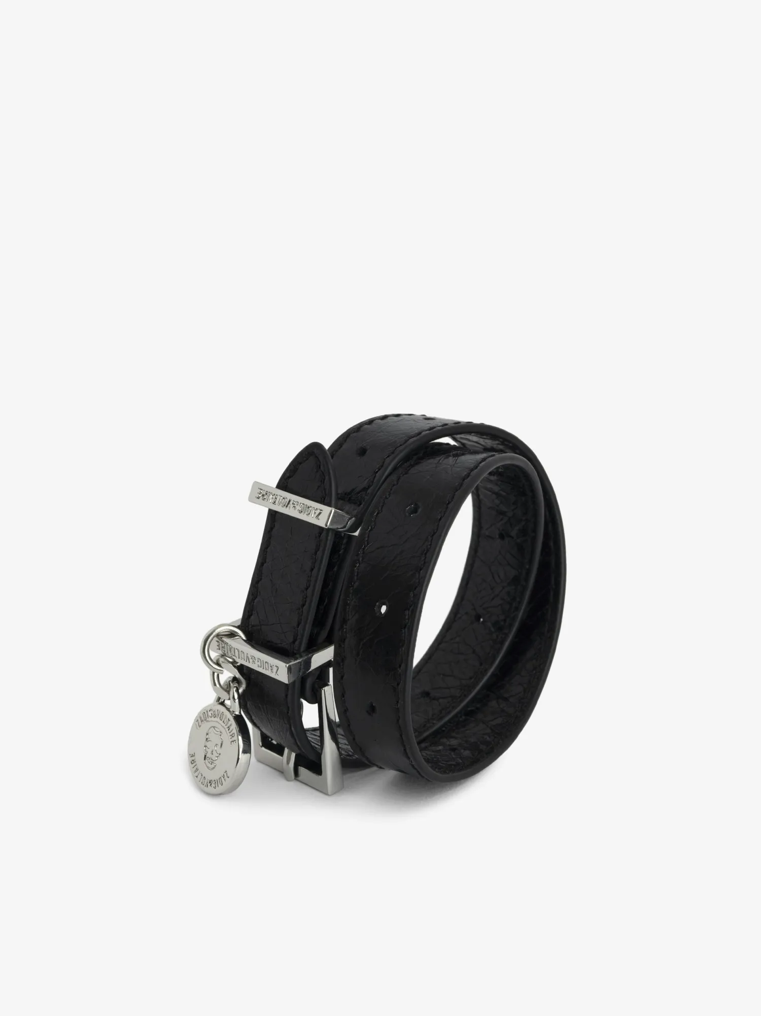 – Double-wrap bracelet in black vintage-effect patent leather for women – Holes, metal buckle and Zadig&Voltaire medalli…