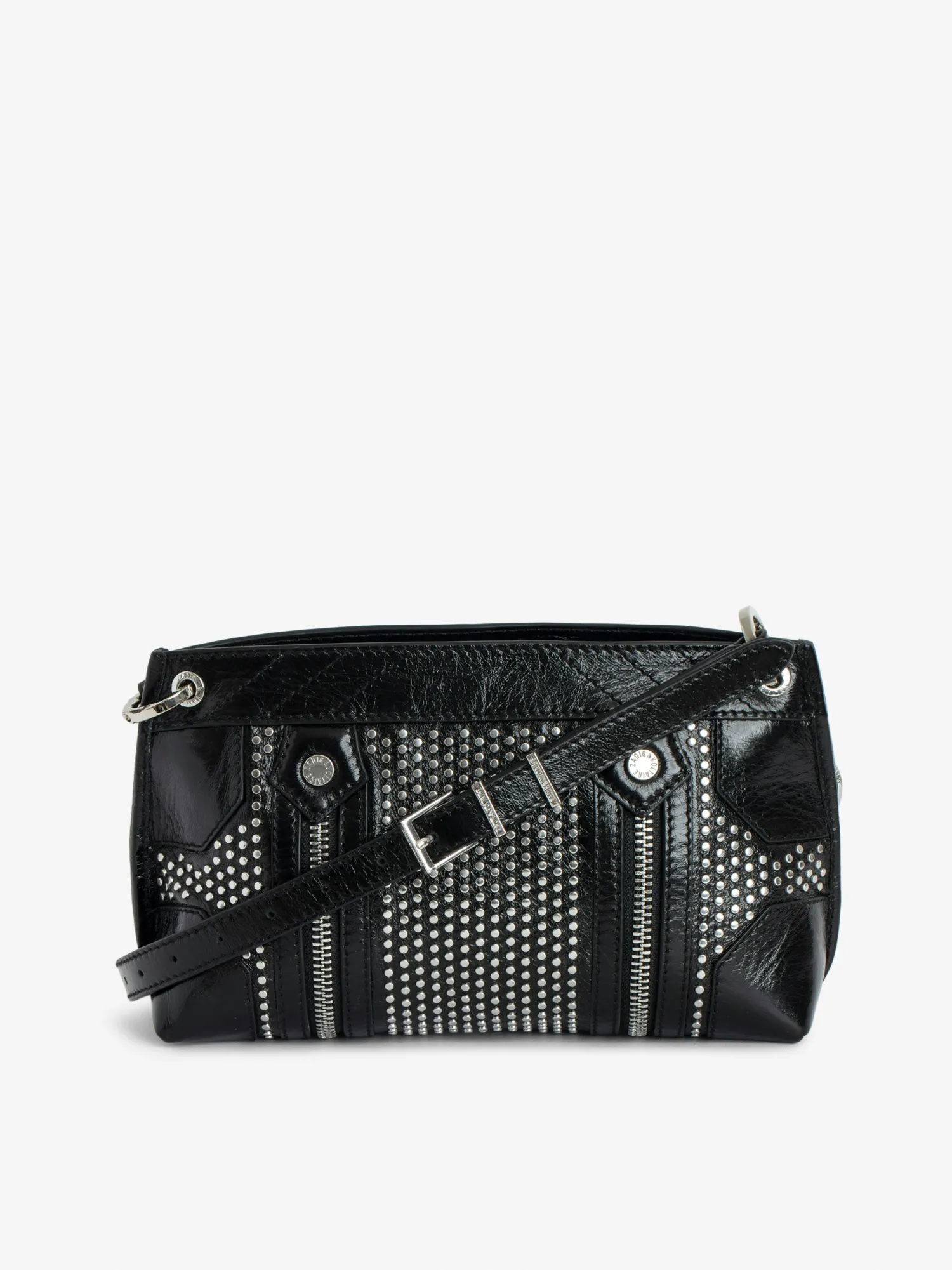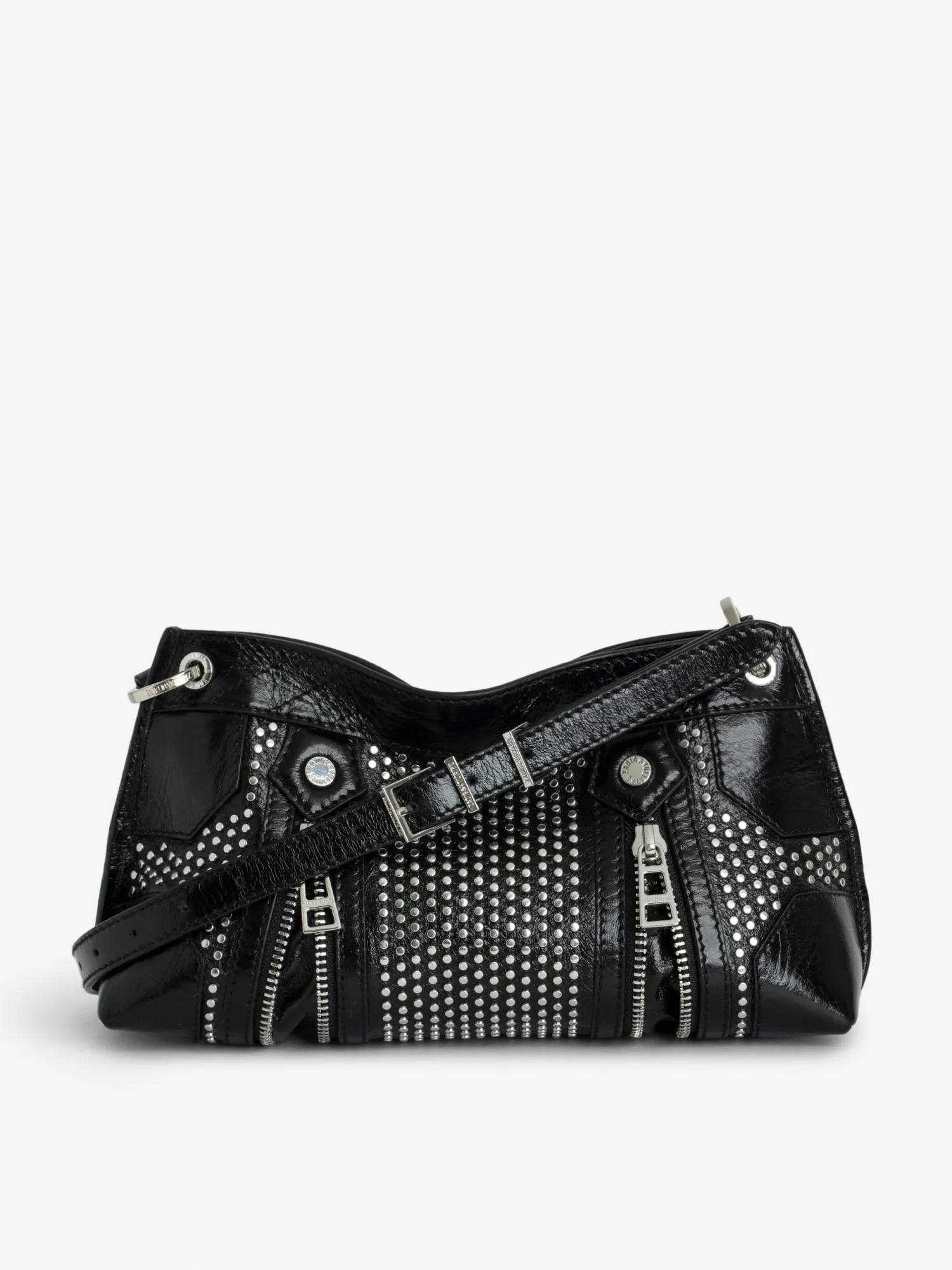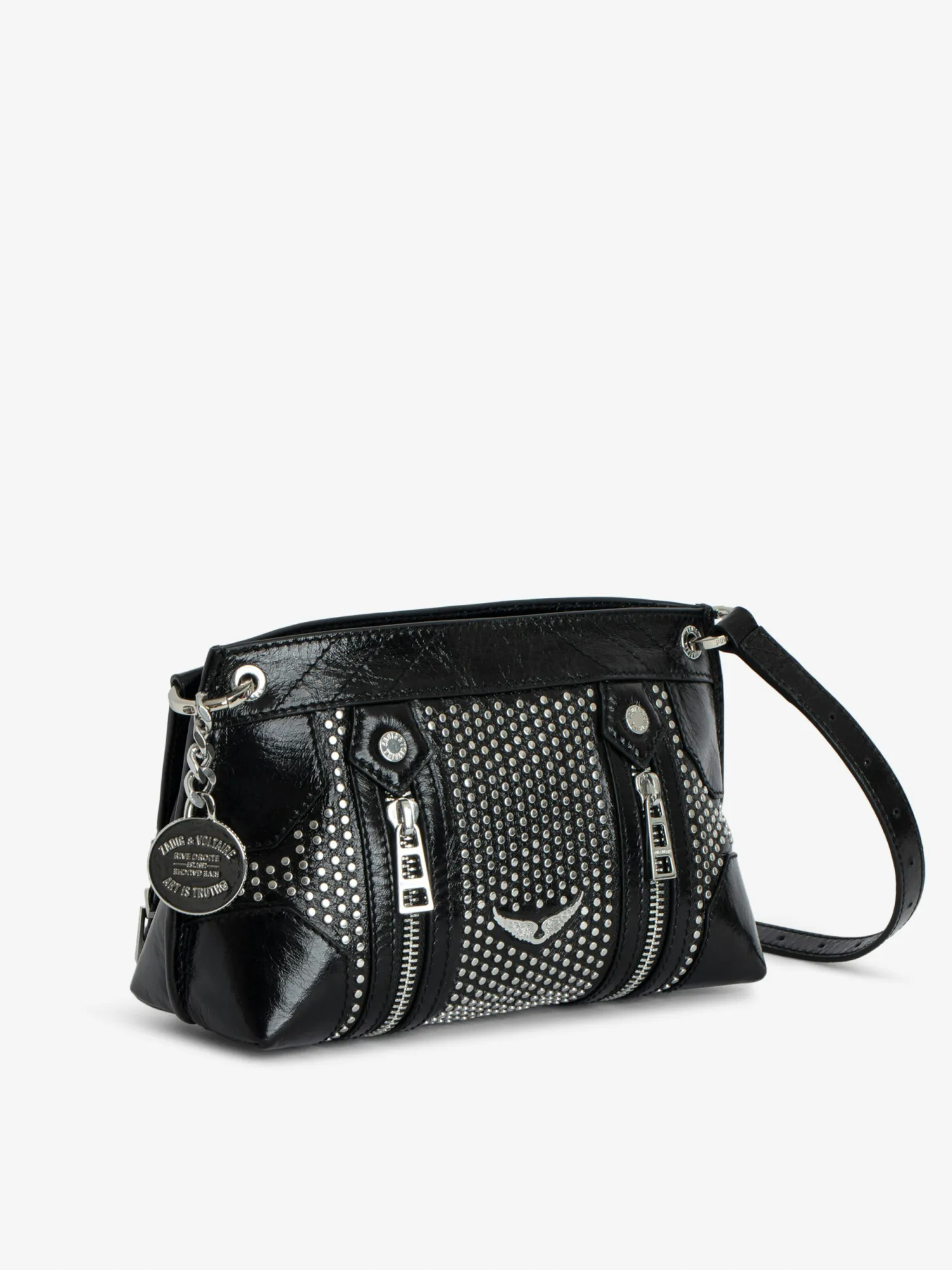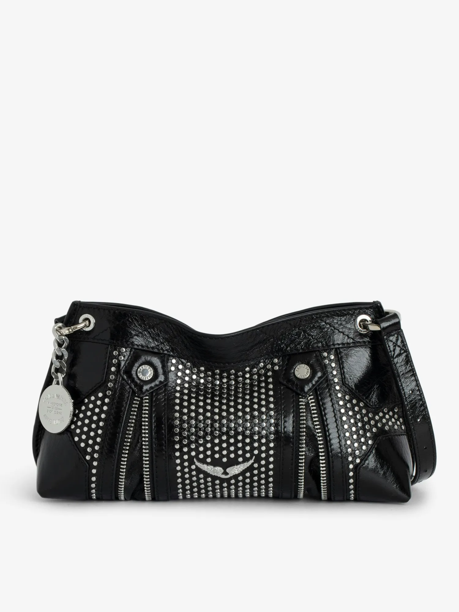 – Women’s Sunny Mood bag in black patent leather with vintage effect – Adjustable leather shoulder strap – Zip fastening – Zipped gusseted compartments to make the bag bigger – 6 card slots and 1 zipped inside pocket- Metal wings and studs – Metal strap with links and Zadig&Voltaire medallion – Can be worn on the shoulder or across the body