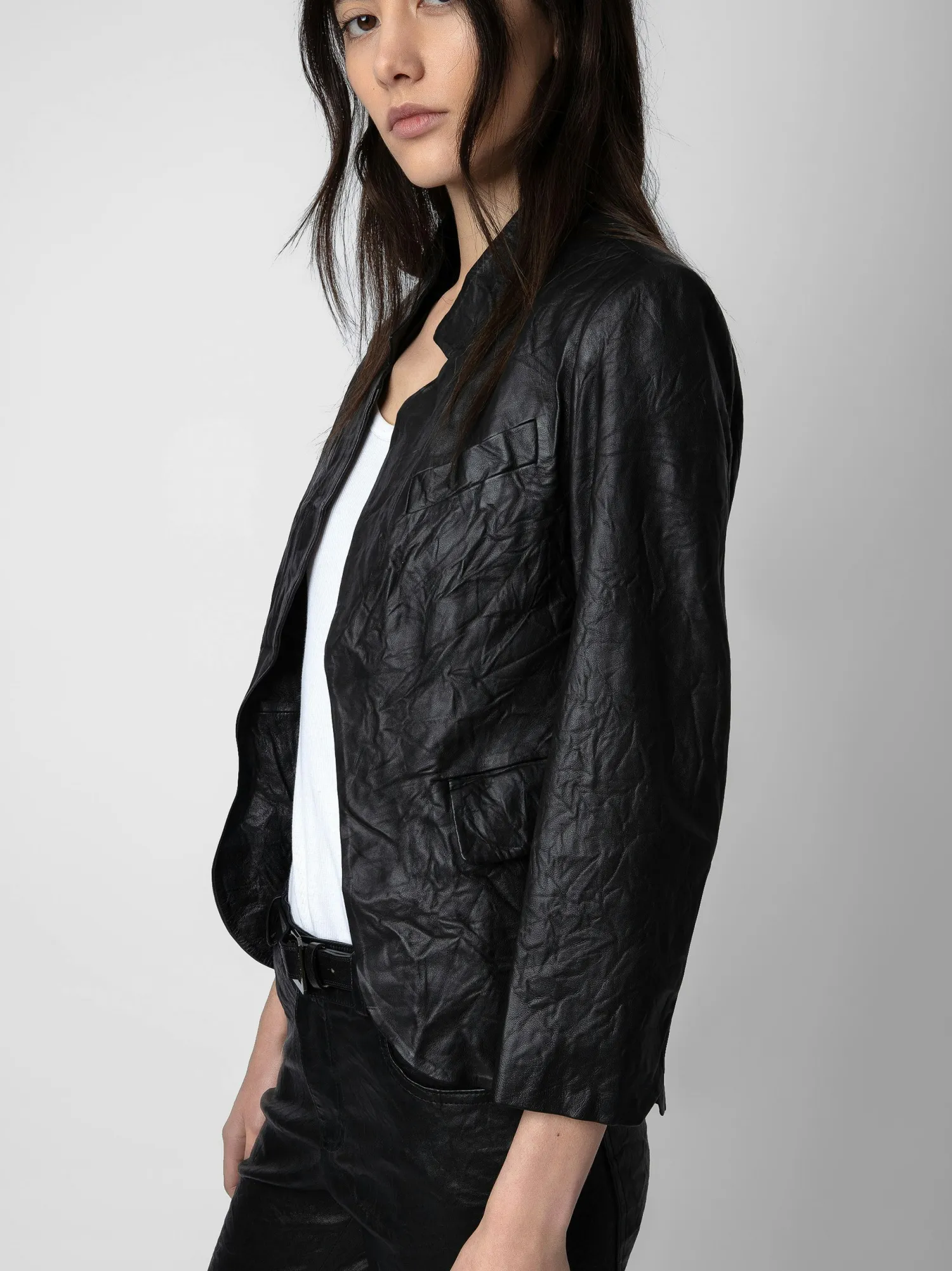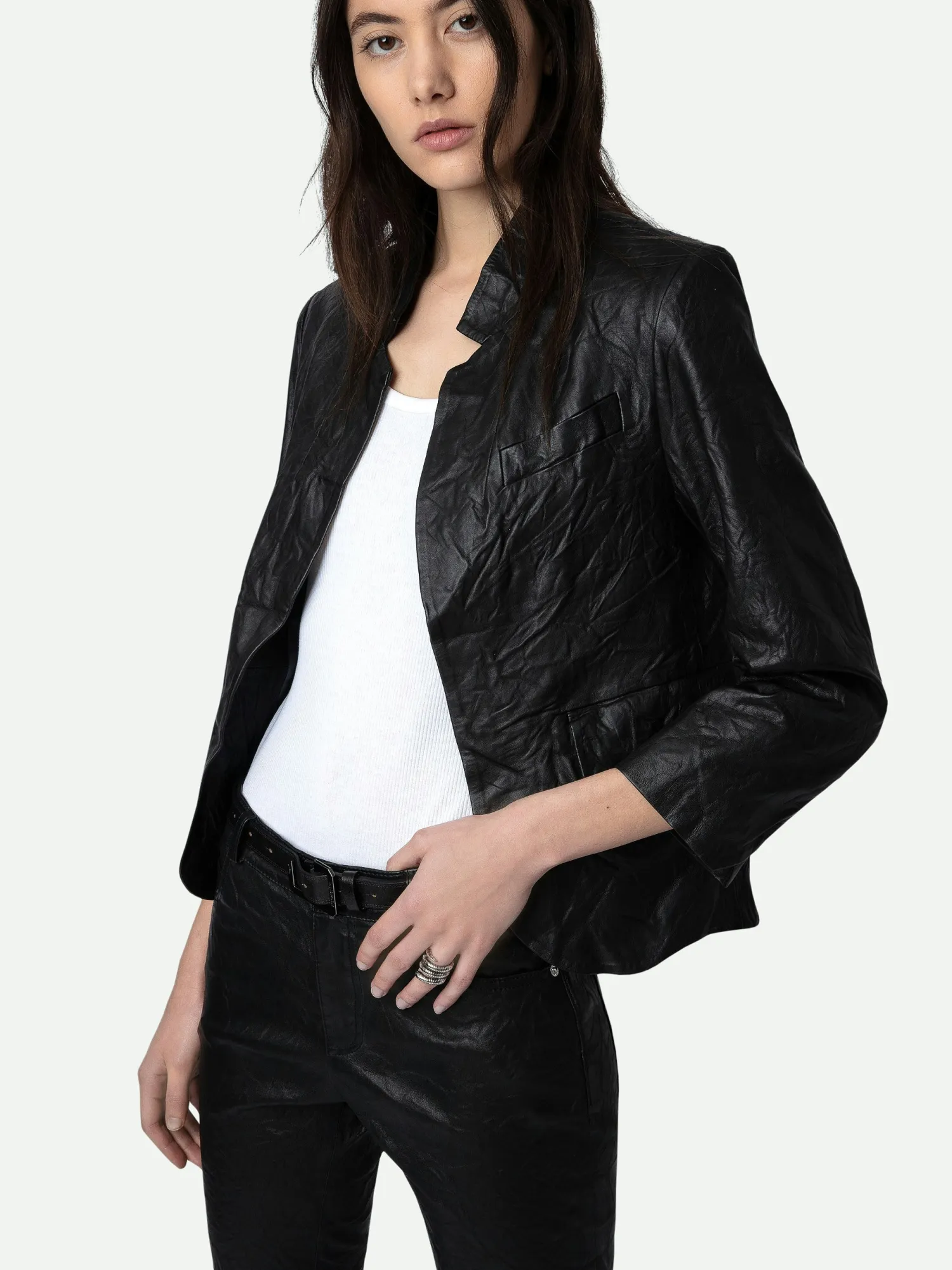 The iconic Verys jacket takes on the Maison’s signature material: crinkled leather. – Zadig&Voltaire Women’s black…