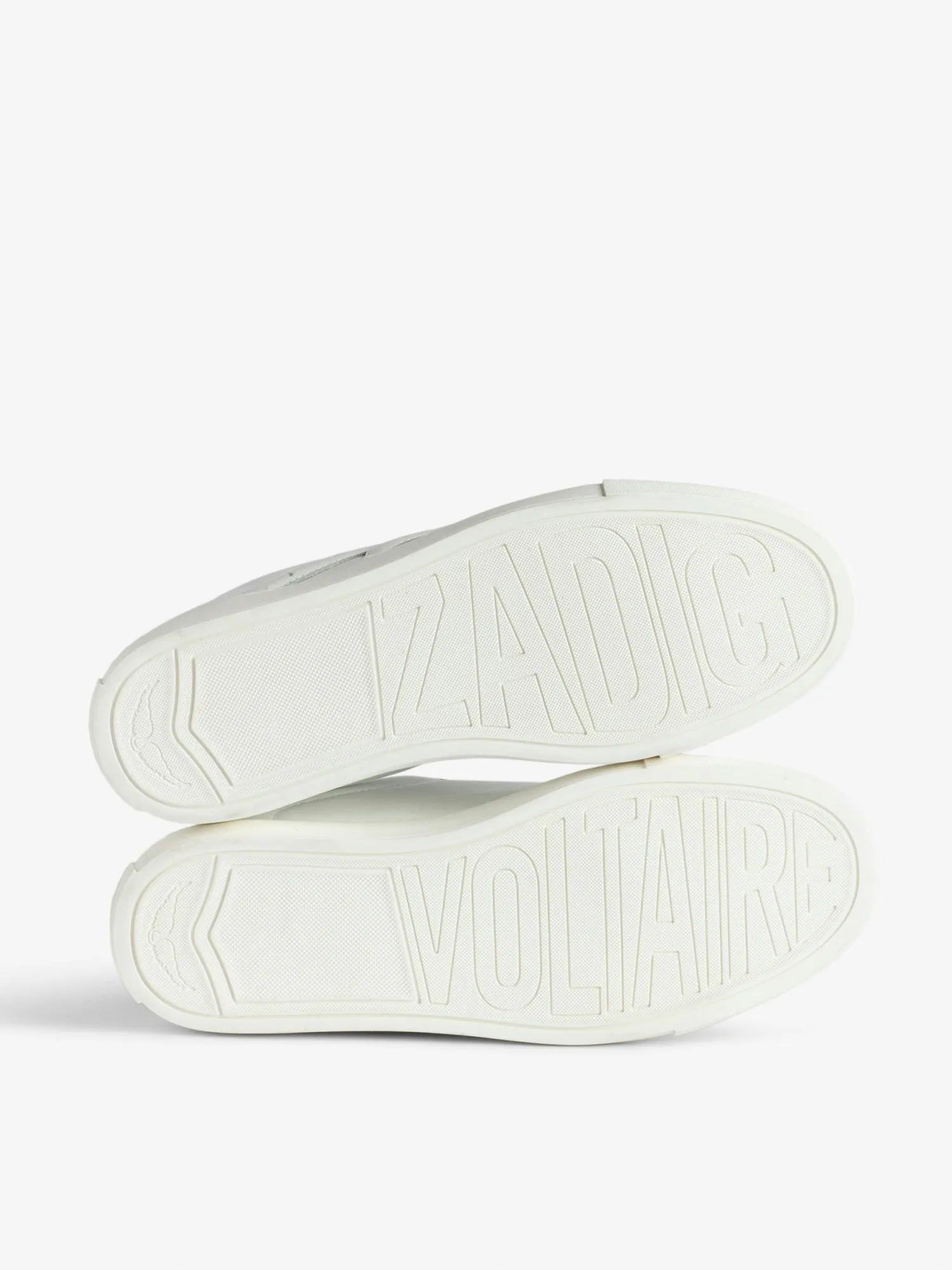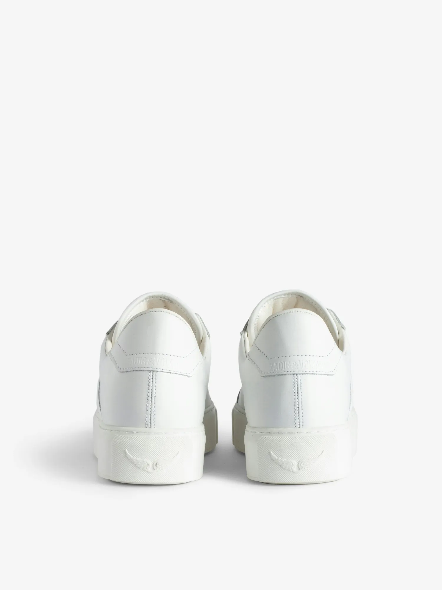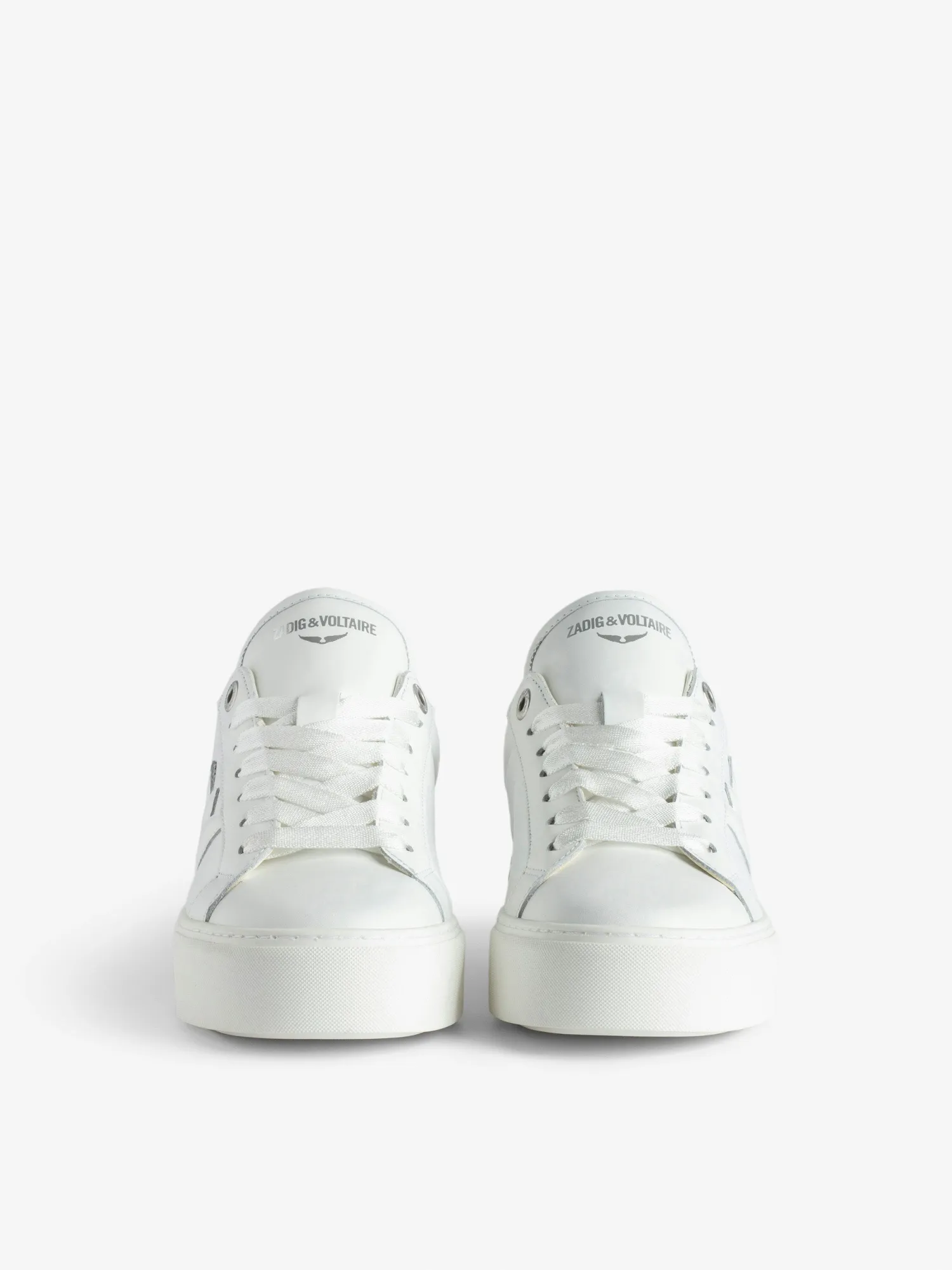 – Women’s white smooth leather lace-up low-top sneakers – Lightning bolt panel – Zadig&Voltaire branded tongue and chunky sole – Made in Portugal