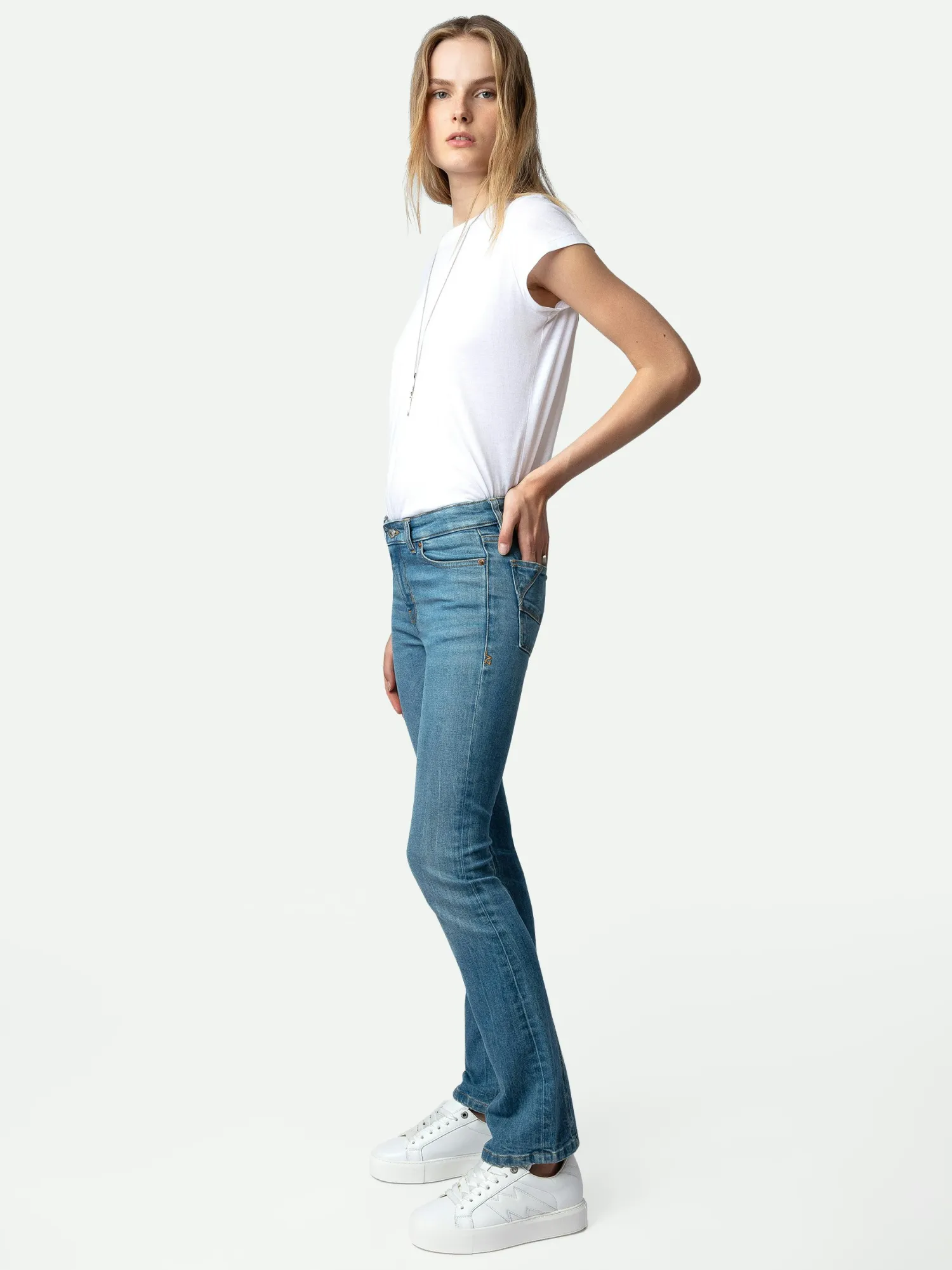 – Women’s white smooth leather lace-up low-top sneakers – Lightning bolt panel – Zadig&Voltaire branded tongue and chu…