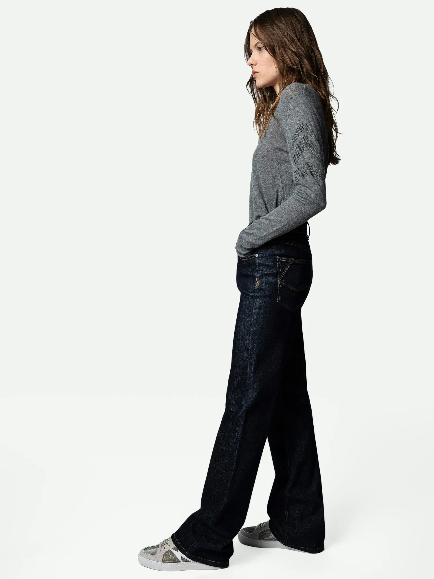 The brand’s iconic ZV1747 sneakers are available this season in smooth white suede, embellished with glittery fabric tabs, lightning bolt patches and "Girls Can Do Anything" laces. – Zadig&Voltaire women’s ZV1747 low-top sneakers in white leather and glittery fabric – Girls can do anything laces – Lightning bolt topstitching – Suede tabs – Made in Portugal.